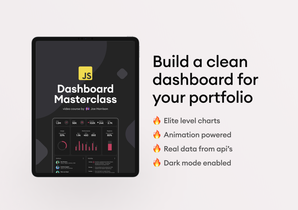 In this masterclass we will building 3 separate animated dashboards, utilising a mixture of libraries and techniques. You can view a live demo of dashboard 3 here